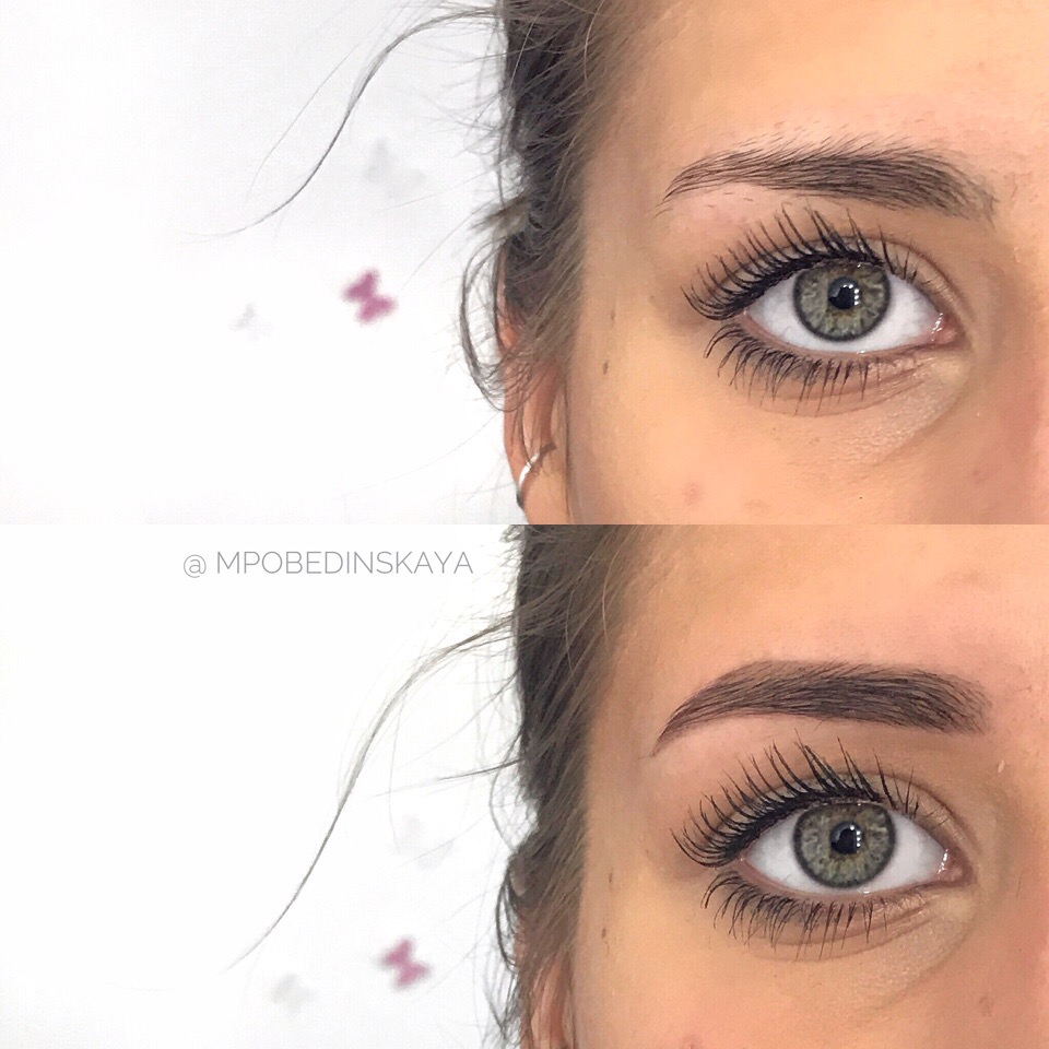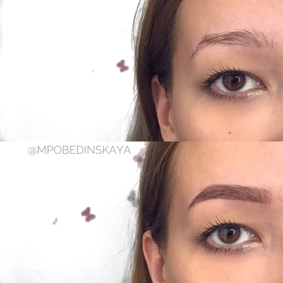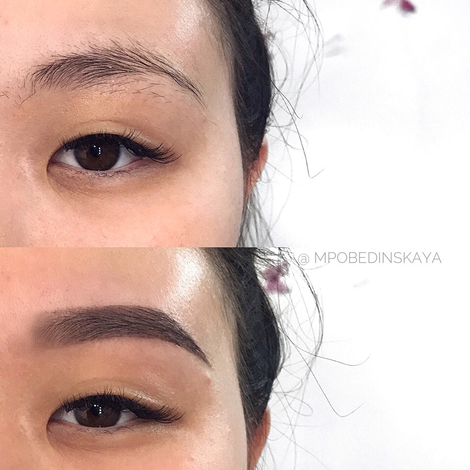 Обучалась подбору формы и макияжу бровей на курсе "Визажист - бровист".